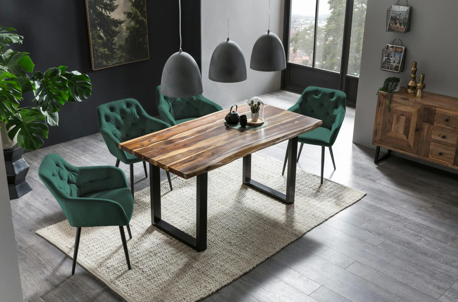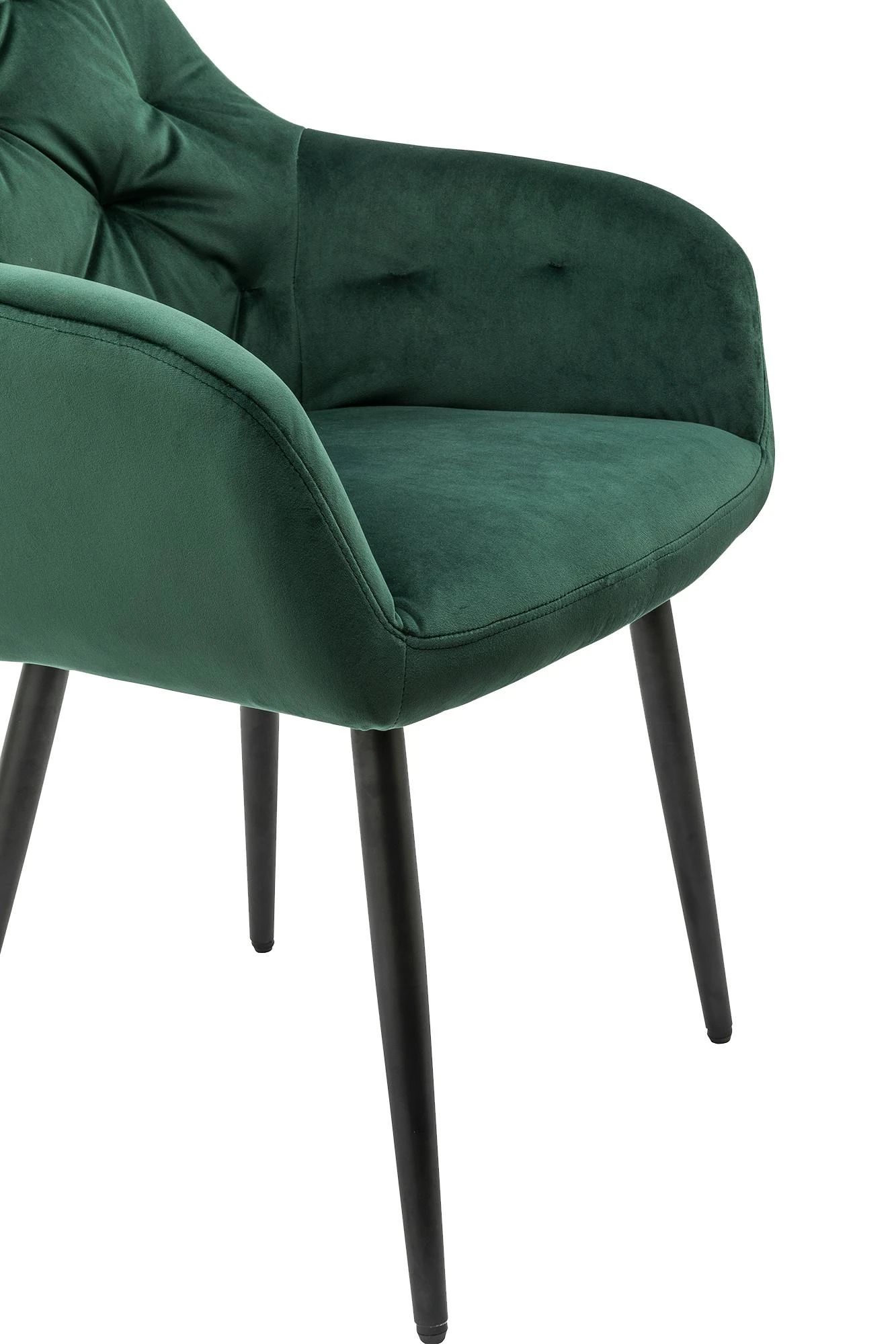 Der moderne Polsterstuhl besticht durch seinen Stoffbezug in Samt-Optik und überzeugt mit seiner Polsterung an Sitz- und Rückenfläche. Das 4 Fuß Gestell aus schwarz pulverbeschichtetem Metall ist höhenverstellbar und gewährleistet nicht nur einen sicheren Stand, sondern bietet auch einen großartigen Kontrast zum Bezug des Stuhles. Durch die bequeme Polsterung, die Rückenlehne und die Armlehnen entsteht ein angenehmer Sitzkomfort der Extraklasse. Das optische Highlight ist die Knopfheftung, welche sich über den inneren Rücken- und Armlehnbereich erstreckt und zu einem harmonischen Gesamtbild beiträgt.