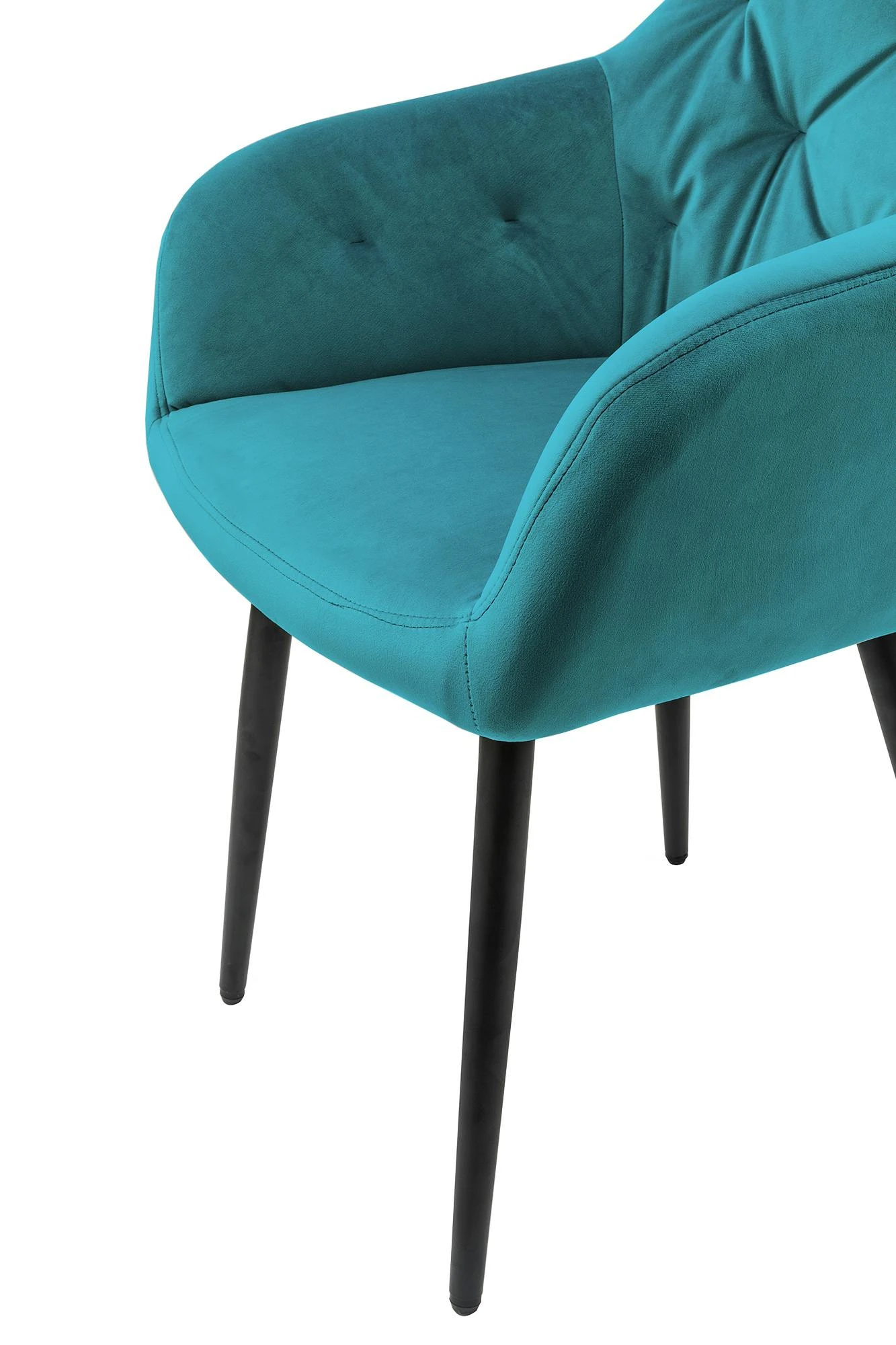 Der moderne Polsterstuhl besticht durch seinen Stoffbezug in Samt-Optik und überzeugt mit seiner Polsterung an Sitz- und Rückenfläche. Das 4 Fuß Gestell aus schwarz pulverbeschichtetem Metall ist höhenverstellbar und gewährleistet nicht nur einen sicheren Stand, sondern bietet auch einen großartigen Kontrast zum Bezug des Stuhles. Durch die bequeme Polsterung, die Rückenlehne und die Armlehnen entsteht ein angenehmer Sitzkomfort der Extraklasse. Das optische Highlight ist die Knopfheftung, welche sich über den inneren Rücken- und Armlehnbereich erstreckt und zu einem harmonischen Gesamtbild beiträgt.