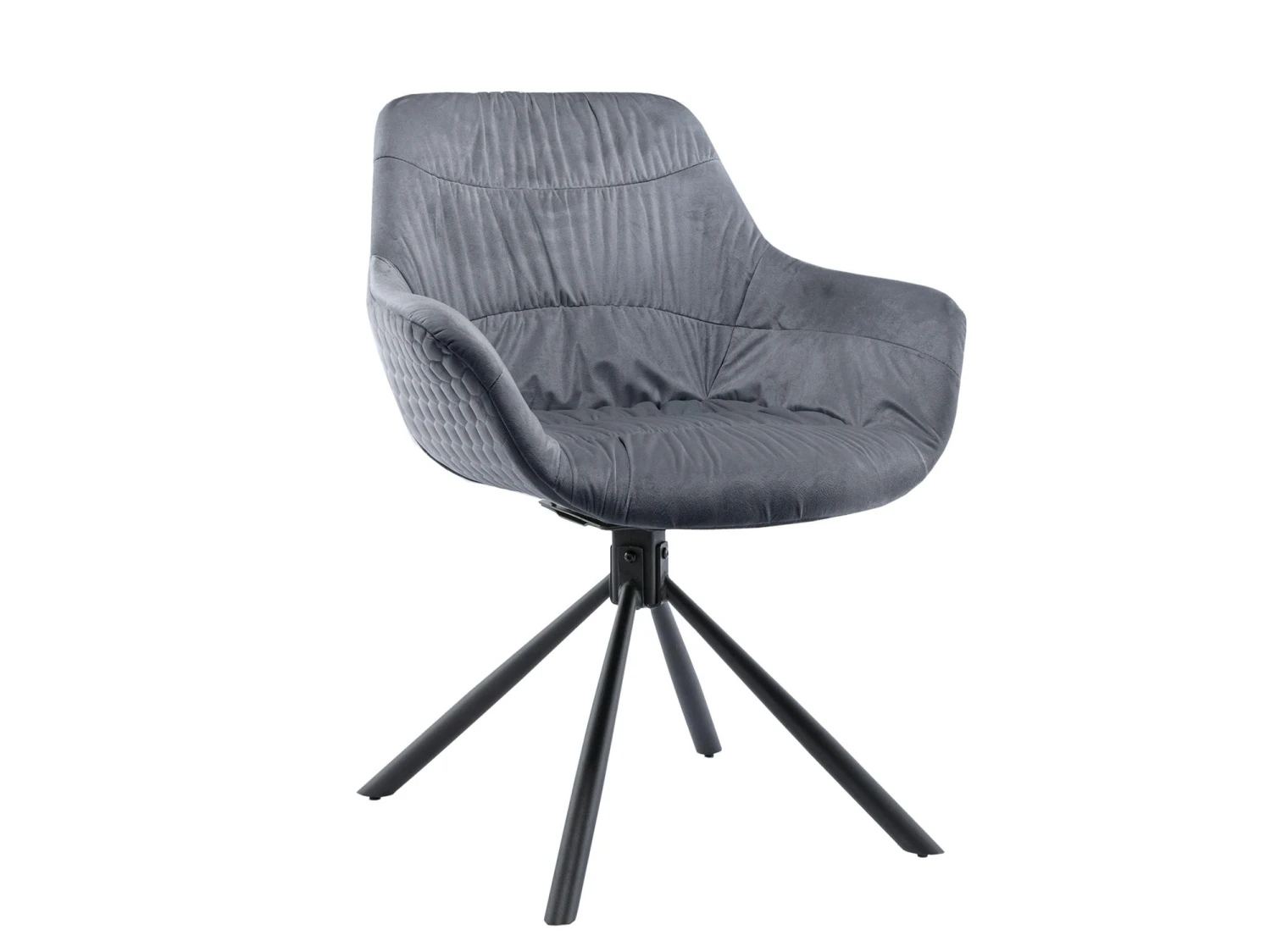 SalesFever Armlehnstuhl Mit Steppung | 360 Grad Drehfunktion | Bezug Samt | Gestell Metall | B 64 X T 63 X H 82 Cm | Hellgrau – Schwarz