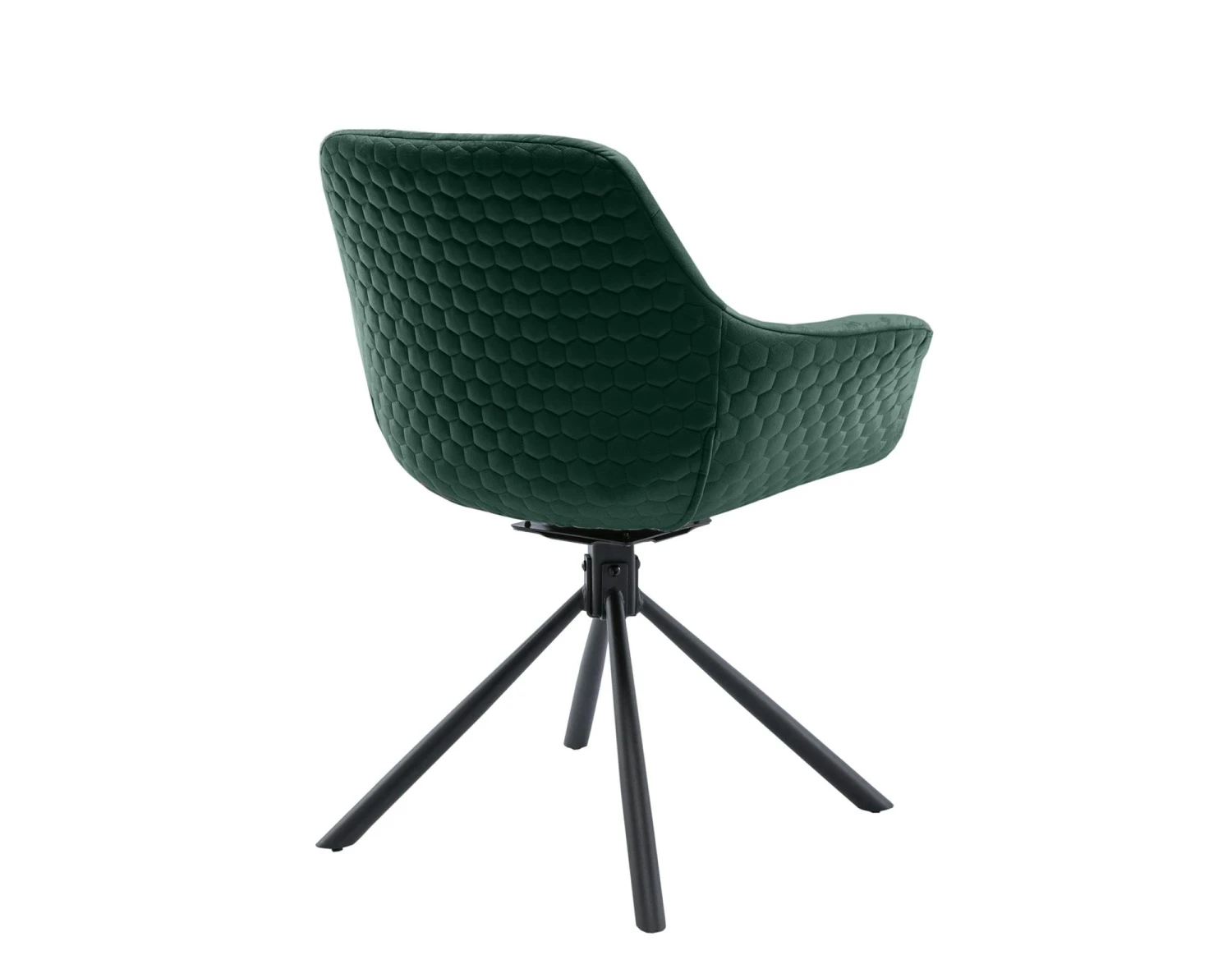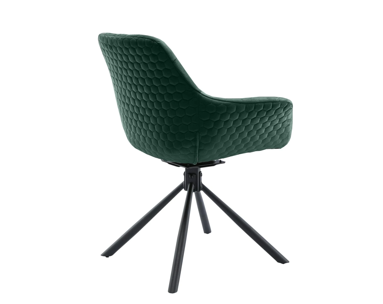 Der trendige Armlehnstuhl besticht durch seinen Stoffbezug in Samt-Optik und seinem Baseball-Gestell mit 360° Drehfunktion aus schwarz pulverbeschichtetem Metall. Die Metallbeine gewährleisten nicht nur einen sicheren Stand, sondern harmonisieren auch perfekt mit dem Bezug des Stuhles. Durch die bequeme Sitzschale mit Armlehnen erhalten Sie einen angenehmen Sitzkomfort der Extraklasse. Die Quersteppung an dem inneren Sitz- und Rückenbereich, sowie die Wabensteppung, die den äußeren Bereich schmückt, sind ein absoluter Blickfang in Ihrem Wohnraum. Durch seine extravagante Formgebung kann dieser Polsterstuhl auch als Konferenzstuhl genutzt werden. Egal wo er zum Einsatz kommt, Sie und Ihre Gäste werden diesen Sitzkomfort lieben.