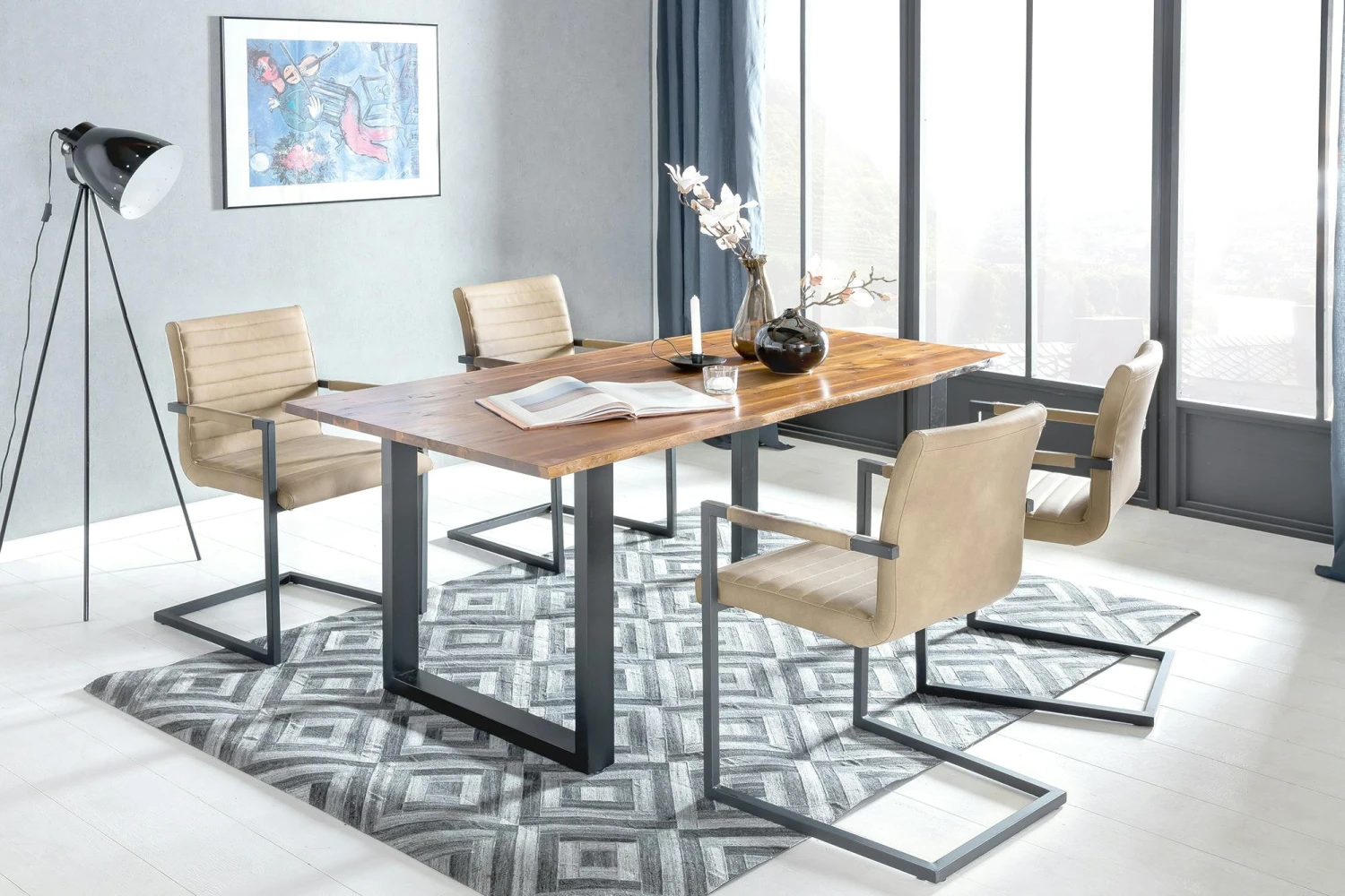 SalesFever Baumkante Esstisch 120 X 80 Cm | Massivholz Akazie | Gestell Metall Schwarz | B 120 X T 80 X H 77 Cm | Cognac