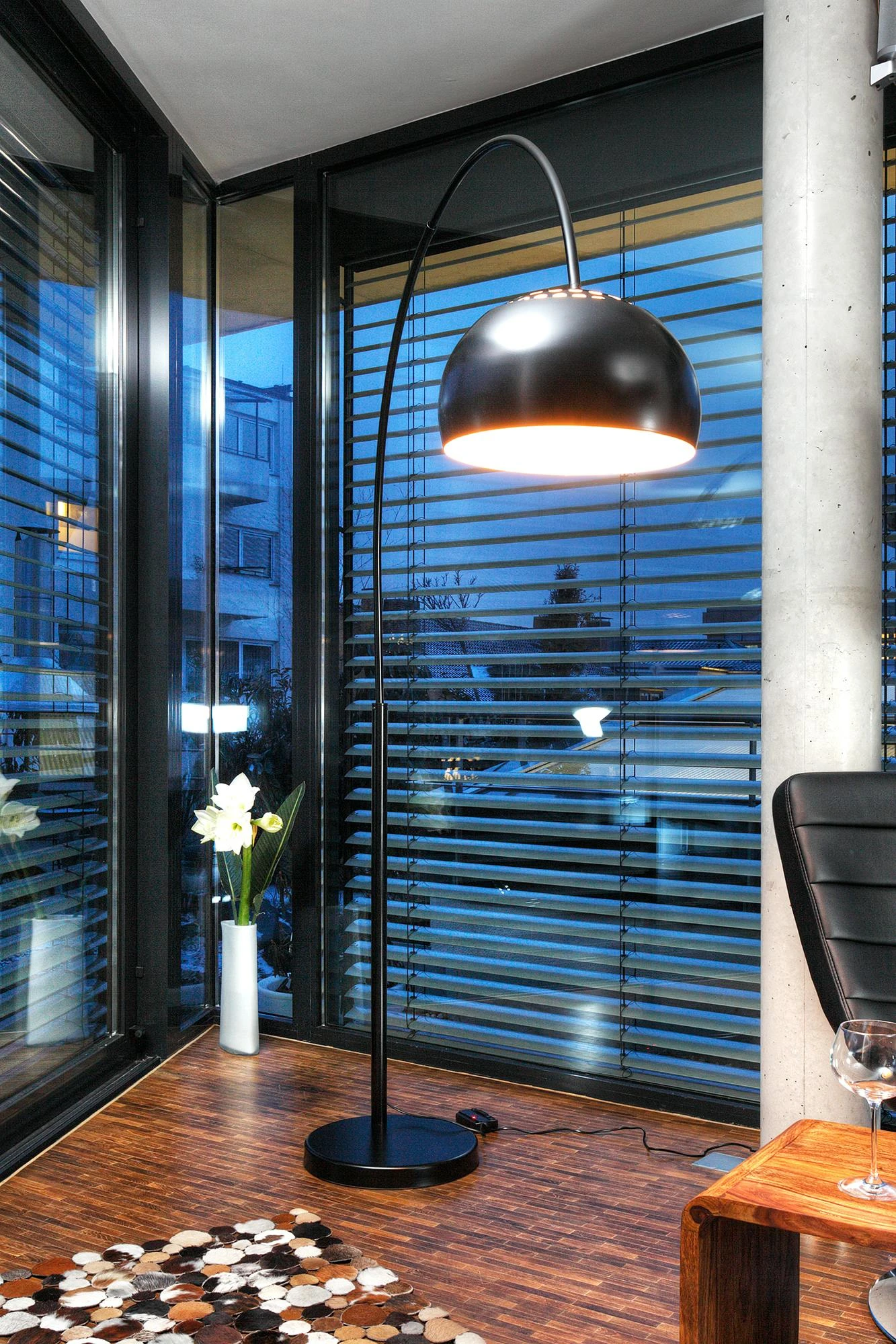 Die Bogenlampe Big Deal steht für anspruchsvolles Lounge-Design im Stil der 60er- und 70er-Jahre. Auf dem Fuß aus echtem Marmor wird die Fußstange mit dem Bogen und dem kugelförmigen Schirm montiert. Der Marmorsockel ist unter einer schwarz lackierten Platte zu finden.