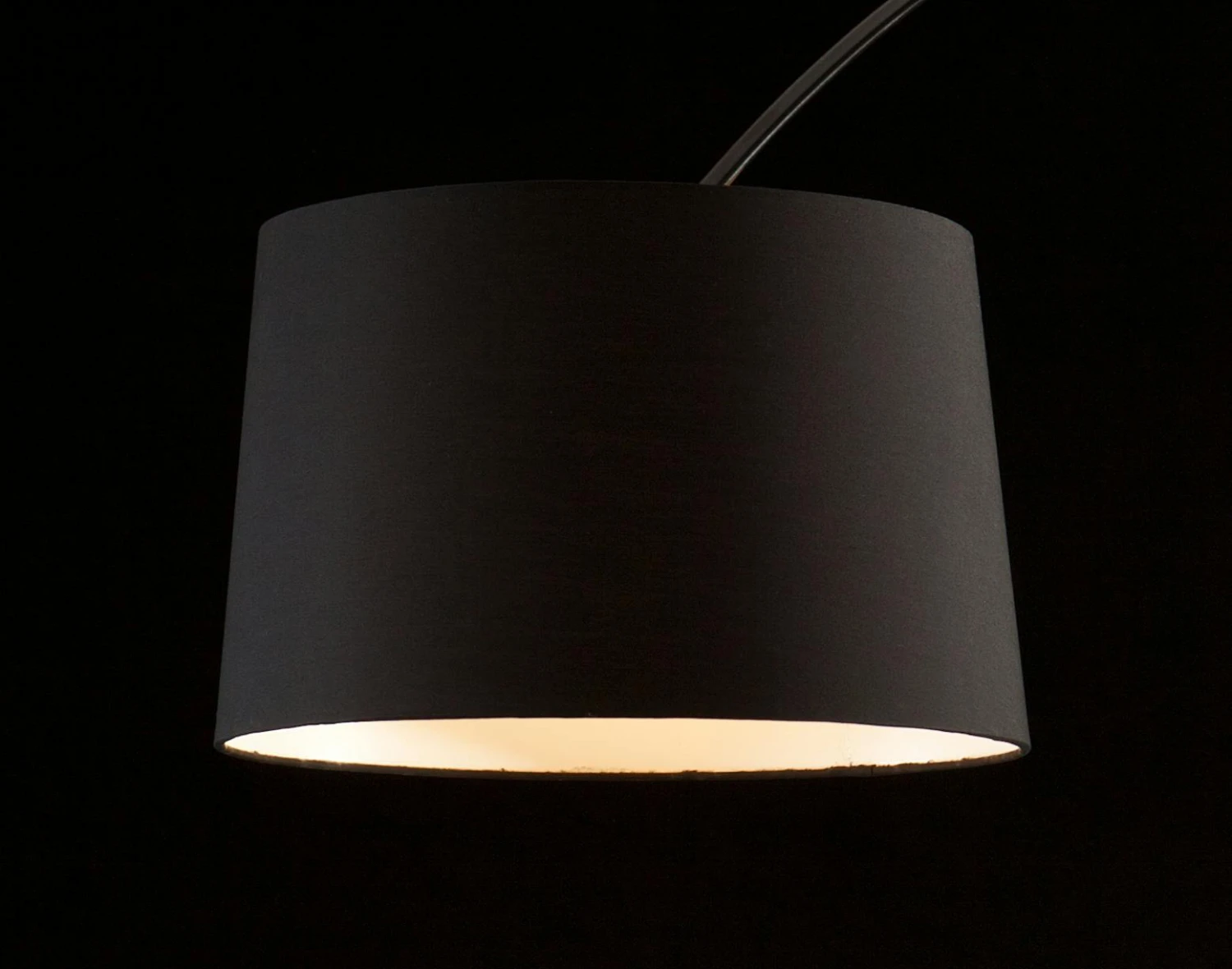 Exklusive Bogenlampe im modernen Design. Der großzügige, trapezförmige Lampenschirm hat einen Durchmesser von 40 cm und wurde aus Textil gefertigt. Während der Bogen aus Metall besteht, wurde der schwere und zugleich wunderschöne Sockel aus Marmor gefertigt. Dieser sieht nicht nur extravagant aus, sondern bietet der Bodenleuchte auch eine enorme Stabilität. Die Leuchte wird über einen Fußschalter bequem ein- oder ausgeschaltet. Die Bogenlampe lässt sich, dank ihrer geschwungenen Form, in jede Lese- und Fernsehecke integrieren. Durch das angenehm warme Licht und den beigefügten Dimm Schalter erhalten Sie in jedem Raum ein gemütliches Ambiente.