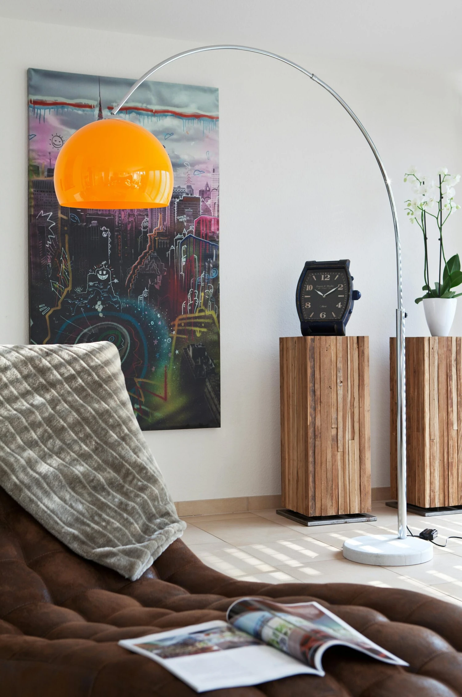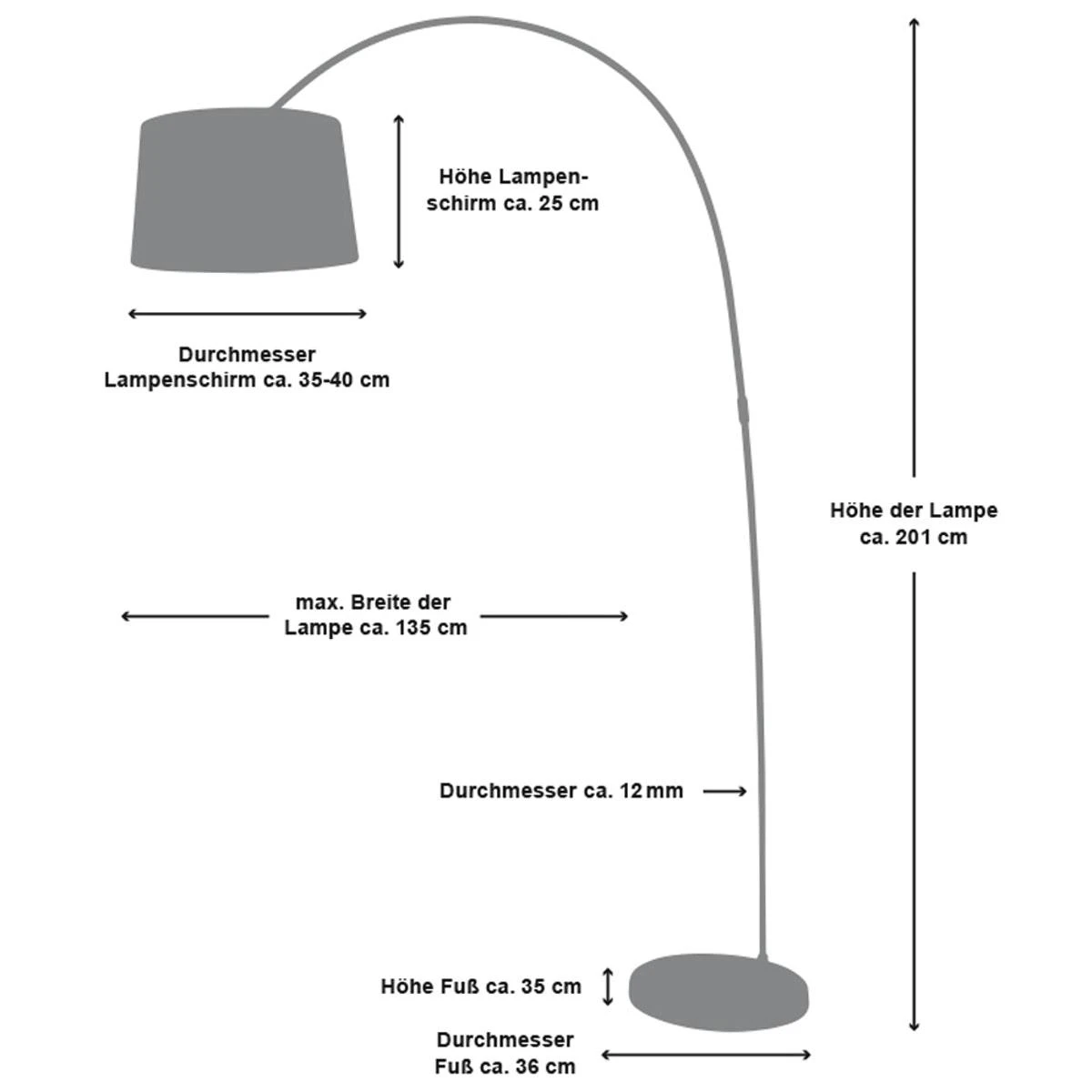 Exklusive Bogenlampe im modernen Design. Der großzügige Lampenschirm hat einen Durchmesser von 40 cm und wurde aus Textil gefertigt. Während der Bogen aus Metall besteht, wurde der schwere und zugleich wunderschöne Sockel aus Marmor gefertigt. Dieser sieht nicht nur extravagant aus, sondern bietet der Bodenleuchte auch eine enorme Stabilität. Die Leuchte wird über einen Fußschalter bequem ein- oder ausgeschalten. Die Bogenlampe lässt sich, dank ihrer geschwungenen Form, in jede Lese- und Fernsehecke integrieren. Durch das angenehm warme Licht und den beigefügten Dimm Schalter erhalten Sie in jedem Raum ein gemütliches Ambiente.