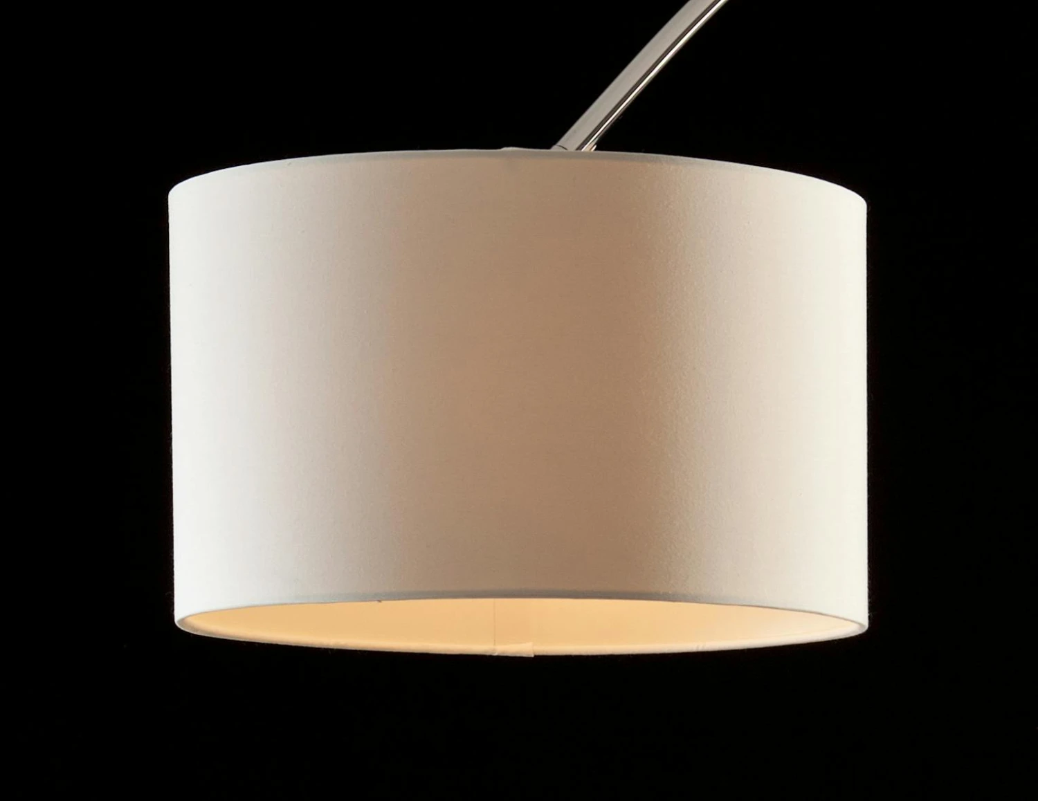 Exklusive Bogenlampe im modernen Design. Der großzügige Lampenschirm hat einen Durchmesser von 35 cm und wurde aus Textil gefertigt. Während der Bogen aus Metall besteht, wurde der schwere und zugleich wunderschöne Sockel aus Marmor gefertigt. Dieser sieht nicht nur extravagant aus, sondern bietet der Bodenleuchte auch eine enorme Stabilität. Die Leuchte wird über einen Fußschalter bequem ein- oder ausgeschalten. Die Bogenlampe lässt sich, dank ihrer geschwungenen Form, in jede Lese- und Fernsehecke integrieren. Durch das angenehm warme Licht und den beigefügten Dimm Schalter erhalten Sie in jedem Raum ein gemütliches Ambiente.