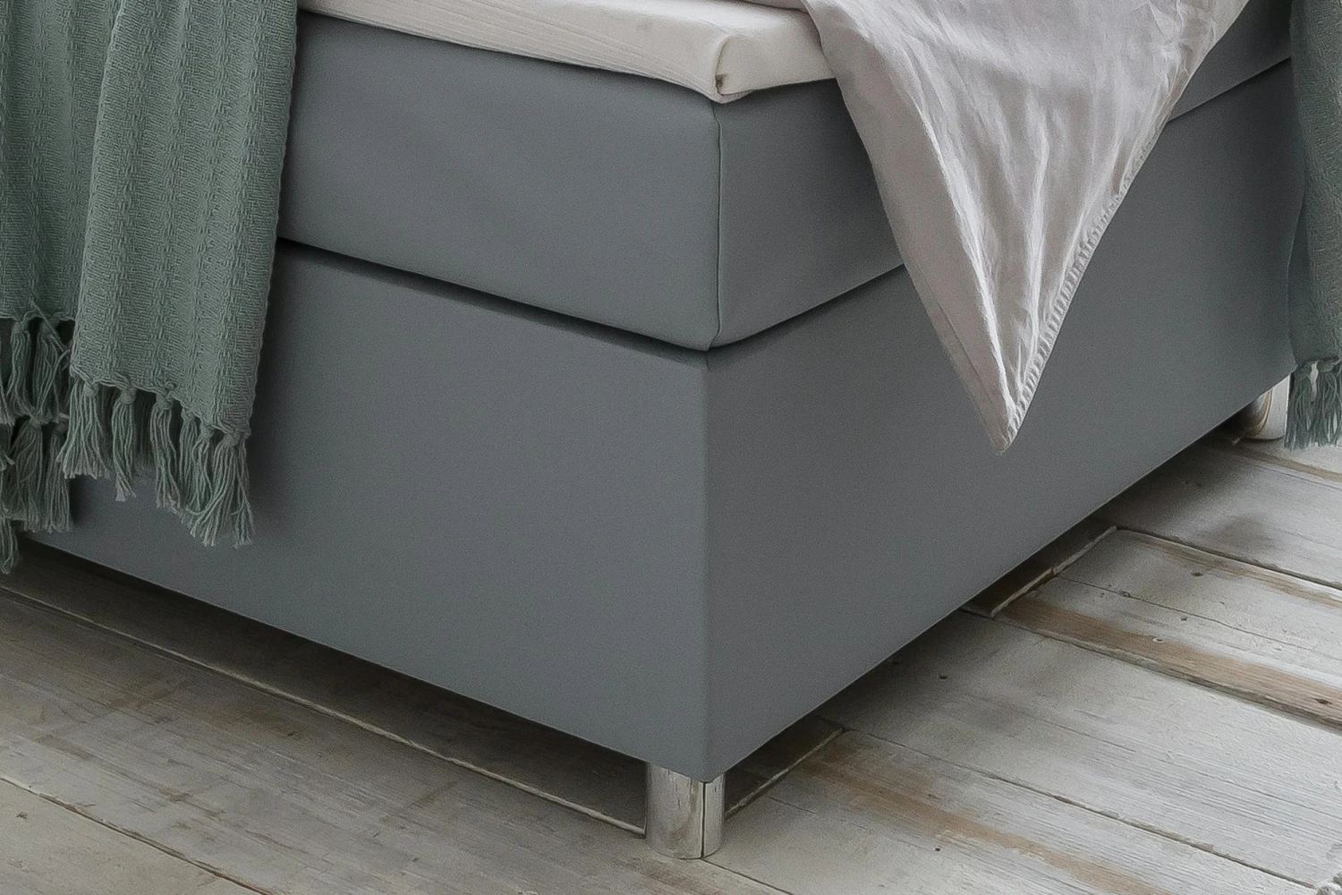 Das moderne Boxspringbett in grau überzeugt mit seinem All-Inklusiv Paket und einer bequemen Liegehöhe, welche das Aufstehen und Hinlegen so angenehm wie möglich macht. Der schicke Samtbezug ist sehr pflegeleicht. Dieses Bett verfügt über 2 stabile Nosag-Federkern Boxen mit Unterfederung, eine durchgehende Bonellfederkern Matratze in H3 und einen 4 cm dicken Topper. Das Bett hat einen hohen Federkomfort zur optimalen Körperanpassung und Druckentlastung. Das hohe und gepolsterte Kopfteil, mit zwei integrierten Lichtleisten, sorgt für lange Leseabende. Erleben Sie einen Schlafkomfort der Extraklasse.