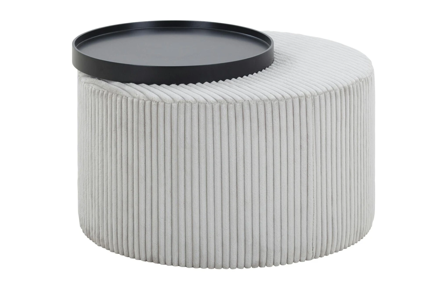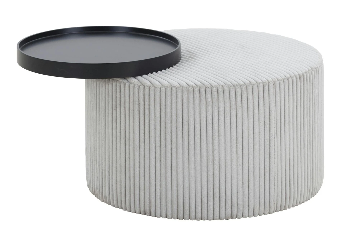 Ein Couchtisch mit besonderem Flair! Der Couchtisch aus MDF-Holz ist überzogen mit grauem Texturstoff aus 100% Polyester und ist garantiert der Hingucker in Ihrer Wohnung. Ein Tablett aus MDF-Holz in mattschwarz sorgt durch den dunklen Kontrast zu dem grauen Stoff für große individuelle Anpassungsfähigkeit in jedem Wohnstil und bietet zusätzlich mit einem Durchmesser von ca. 48 cm genug Platz für Ihre Habseligkeiten. Ob als Ablage für die TV-Bedienung und Zeitschriften oder als Eyecatcher im Schlafzimmer mit Ihren Schmuckutensilien: profitieren Sie von der schlichten skandinavischen Eleganz!