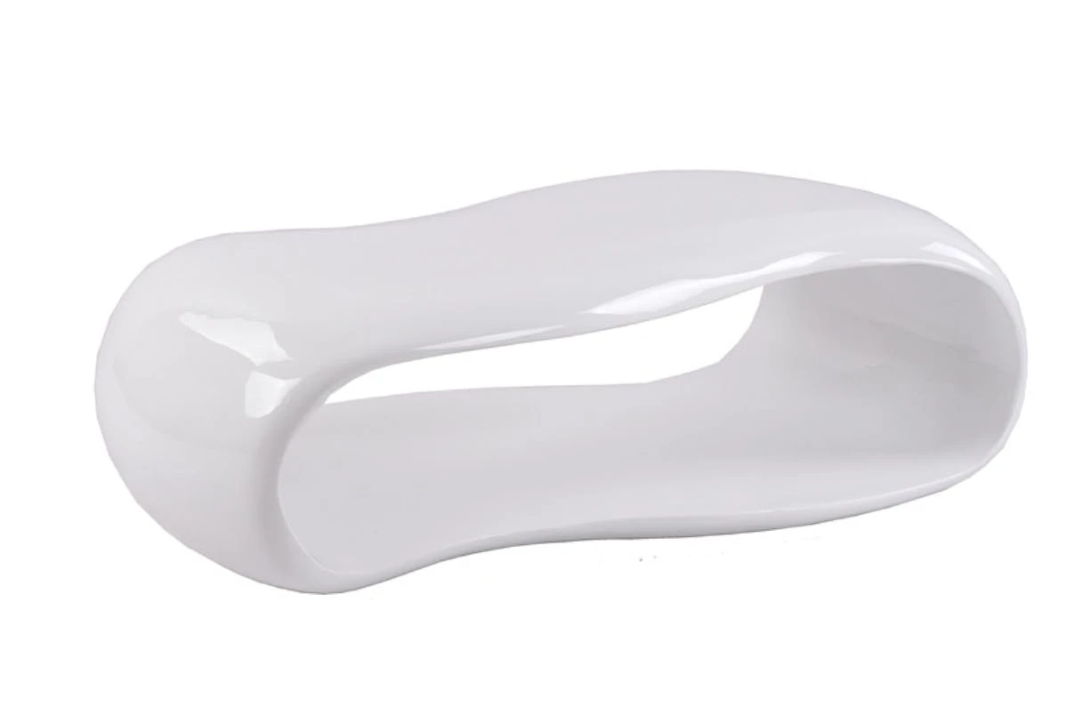 Der abgerundete Couchtisch überzeugt durch seinen Retro-Look und die moderne Linienführung. Der komplette Sofatisch wurde aus hochwertigem Fiberglas hergestellt und in Hochglanz weiß lackiert. Das Design Schmuckstück fällt durch seine abgerundete Form sofort ins Auge. Aber auch der praktische Zweck ist hier bei der Herstellung nicht außer Acht gelassen worden. Auf der Tischplatte und in dem zusätzlichen Ablagefach ist genügend Platz für diverse Utensilien vorhanden. Durch seine abgerundete Form laufen Sie nicht Gefahr sich an den Ecken zu stoßen.