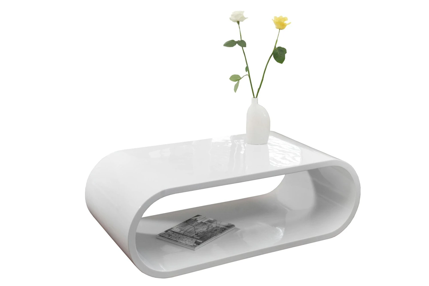 Der Lounge-Tisch Finio begeistert durch seine schlichte Eleganz und die außergewöhnliche Formgebung. Das weiß lackierte MDF-Holz bietet gute Stabilität und weist eine hervorragende Verarbeitung auf. Die weiße highgloss Oberfläche rundet das Gesamtbild nicht nur sehr schön ab, sie ist auch noch ein zusätzlicher Blickfang. Da der Tisch Finio eine Höhe von nur 40 cm hat, eignet er sich hervorragend als Lounge- oder Couchtisch und ist somit individuell einsetzbar. Für alle, die gern mit ausgefallenem Design und topmodernem Retro-Look glänzen möchten. Genießen Sie neidvolle Blicke!