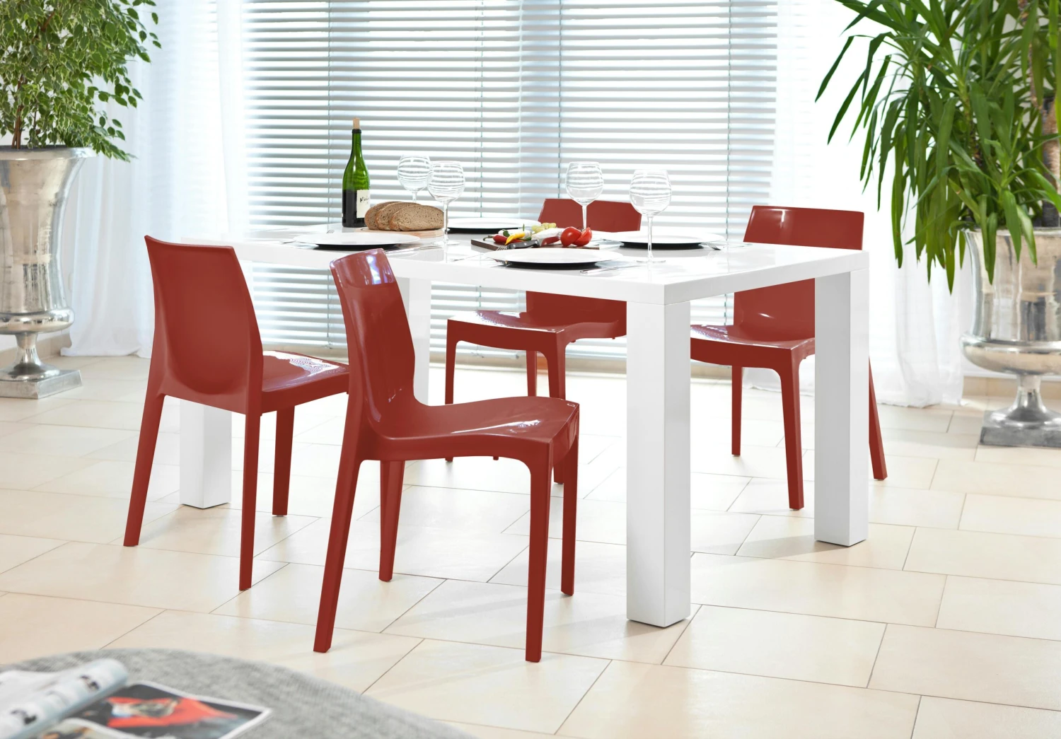 Schöner kann man Kunststoff nicht in Form bringen! Der rote Design Stuhl Sari, gefertigt aus einem einzigen Stück Kunststoff, bringt frischen Wind in Ihr Esszimmer. Er scheint so luftig und zart und ist dennoch ein robuster Stuhl, der auch höheren Belastungen standhält. Lassen Sie sich verzaubern von diesem einzigartigem Designhighlight!