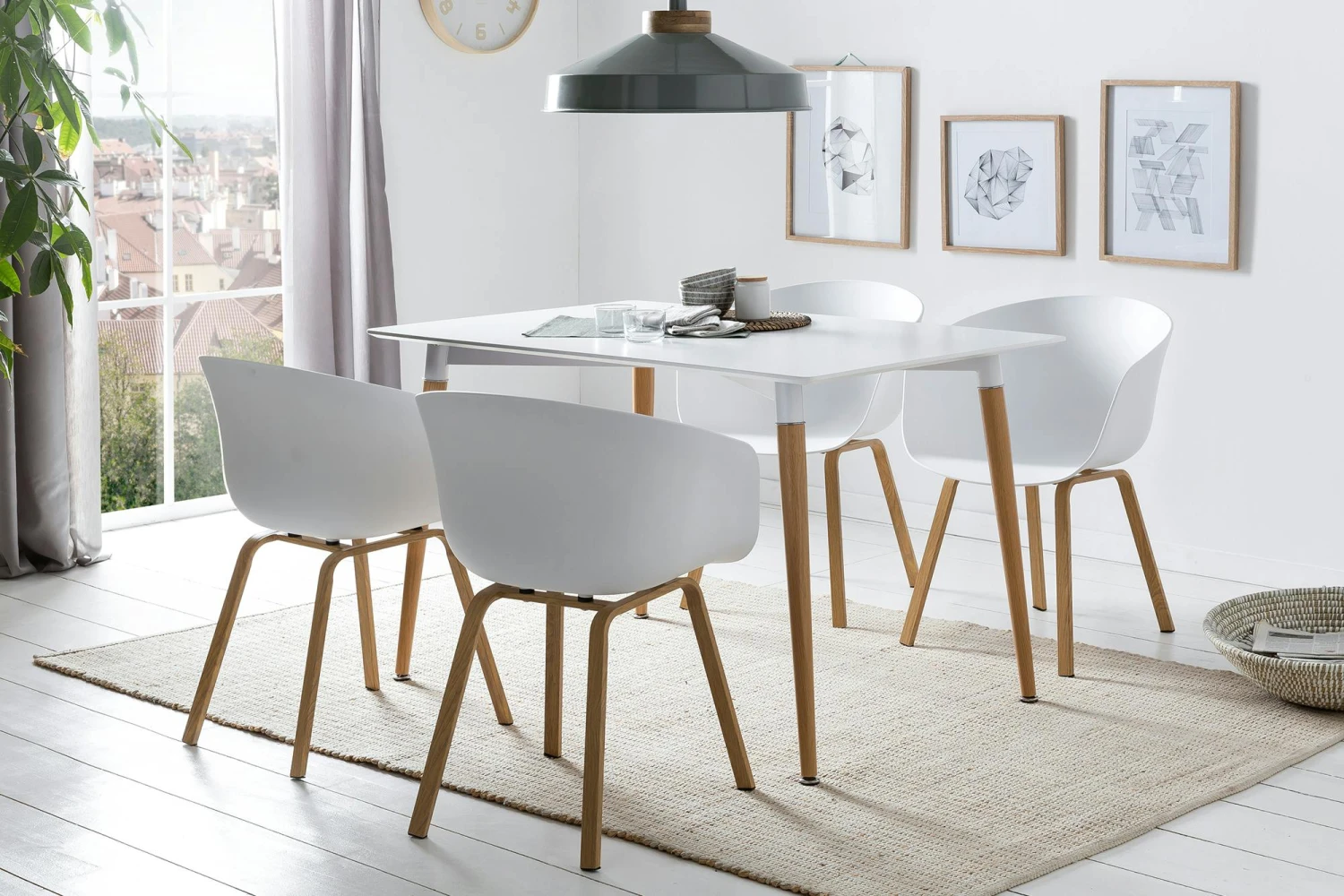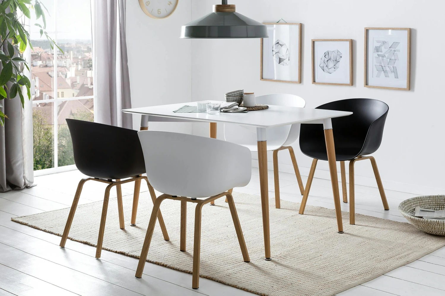 Wer puristisch gestaltete Möbel liebt, wird diesen Esstisch lieben. Dieser Tisch verleiht jedem Esszimmer oder jeder Küche den perfekten Glanz. Die 18 mm dicke Tischplatte wurde aus MDF-Holz gefertigt und weiß matt lackiert. Die vier Beine aus Metall in Eiche-Holzoptik verleihen dem Tisch eine sehr gute Stabilität und sind der passende Gegensatz zur schönen Tischplatte. Dieser Esszimmertisch ist mehr als nur ein Sitzplatz zum Essen. Er eignet sich hervorragend, wenn Familienfeste anstehen oder ein Spieleabend mit Freunden und Familie geplant ist.