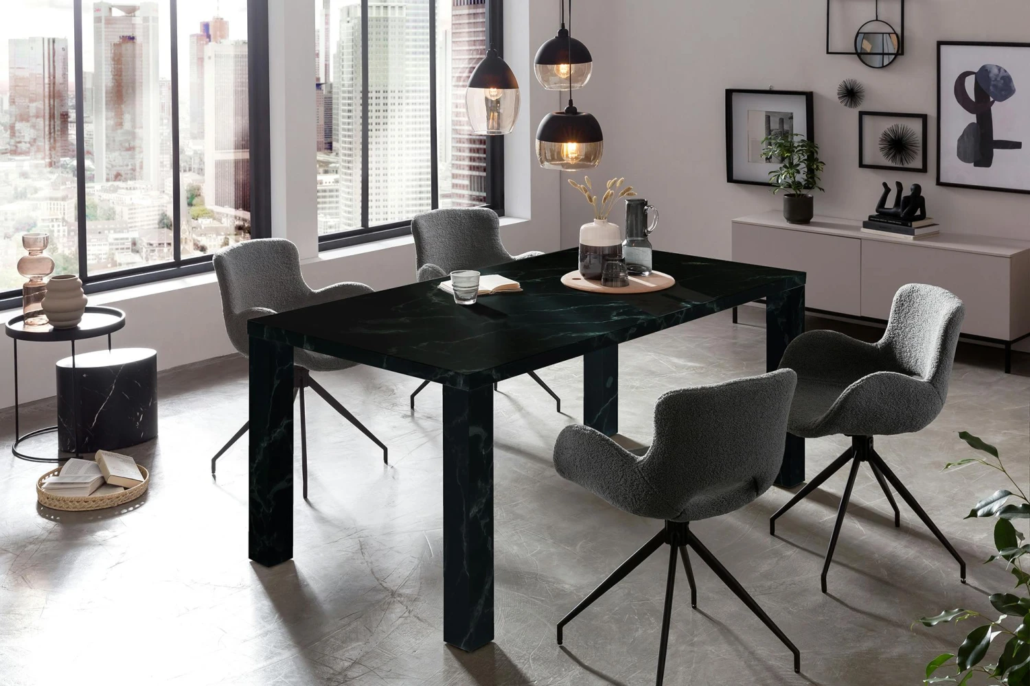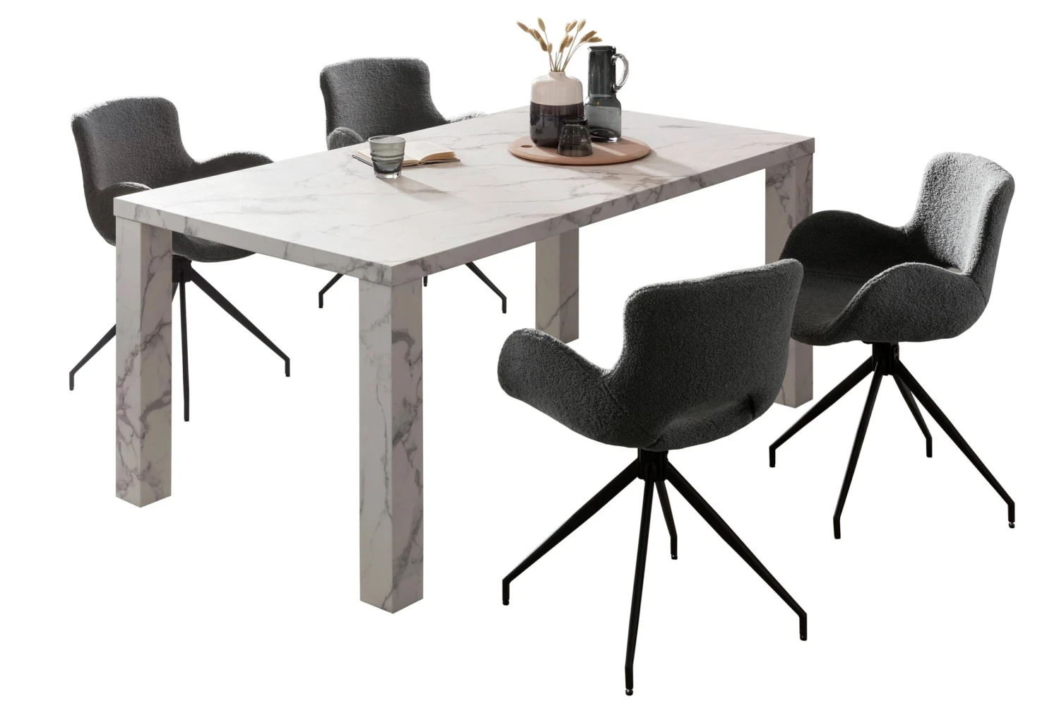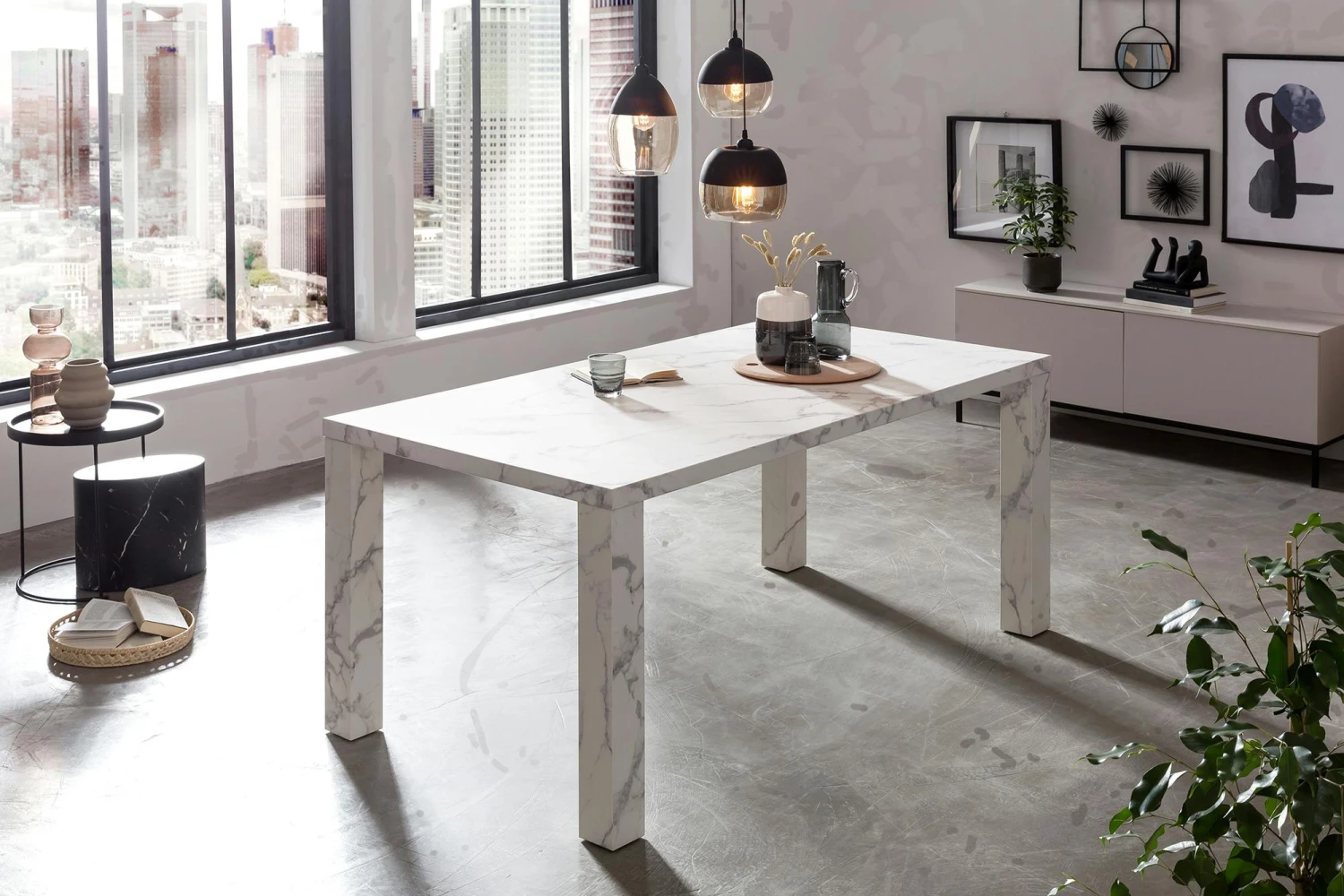 Dieser stylische Esstisch macht jeden Essbereich noch einladender. Der Tisch wurde aus hochwertigem MDF hergestellt. Die Oberfläche ist sehr widerstandsfähig gegen die allgemeinen Belastungen des Alltags. Die besonders breiten Beine und die weiße Marmoroptik machen richtig was her. Der Esstisch – egal ob in der Küche oder im Esszimmer – ist in vielen Wohnungen das Zentrum des gesellschaftlichen Lebens. Hier isst und trinkt man zusammen, man lacht, spielt und unterhält sich.