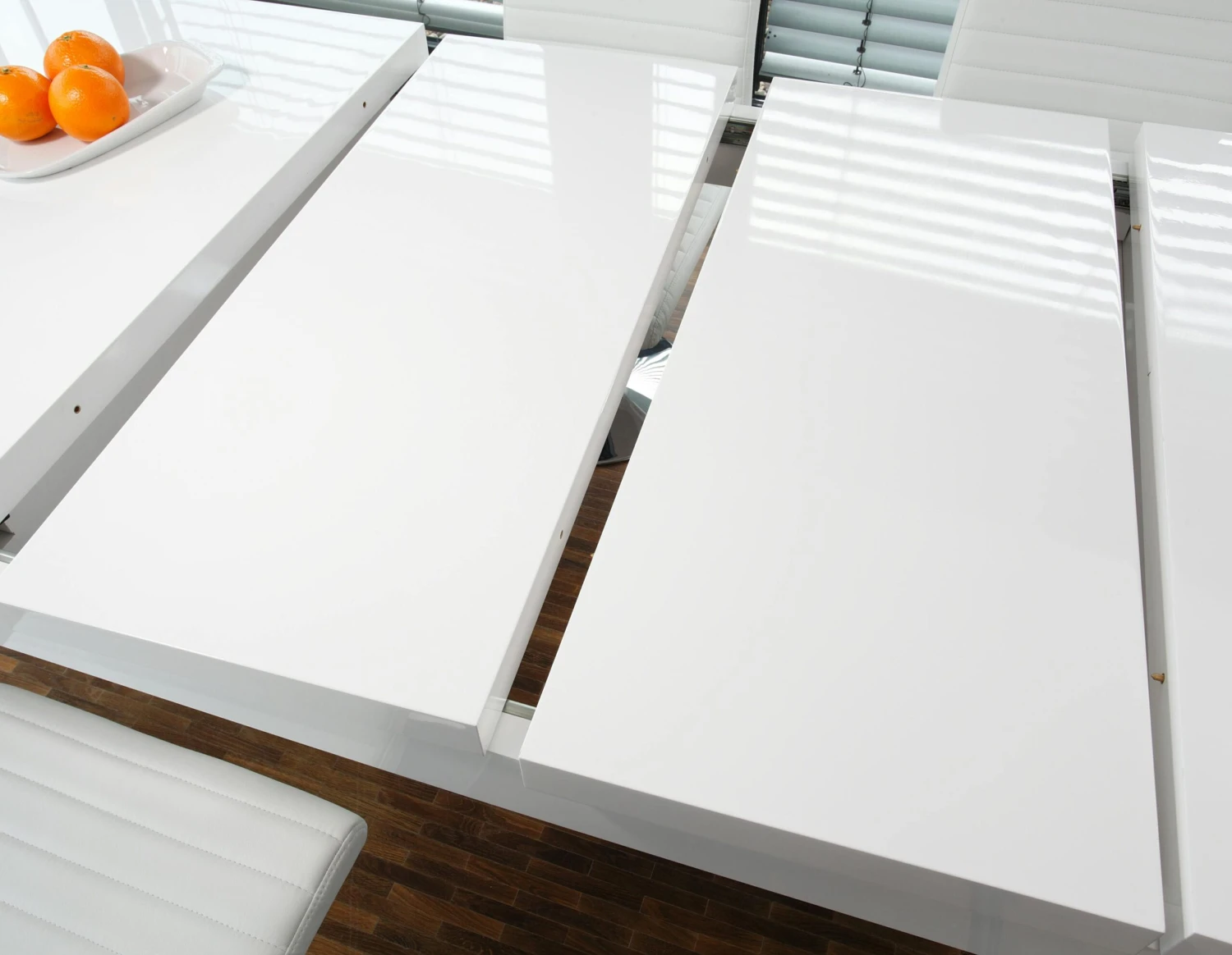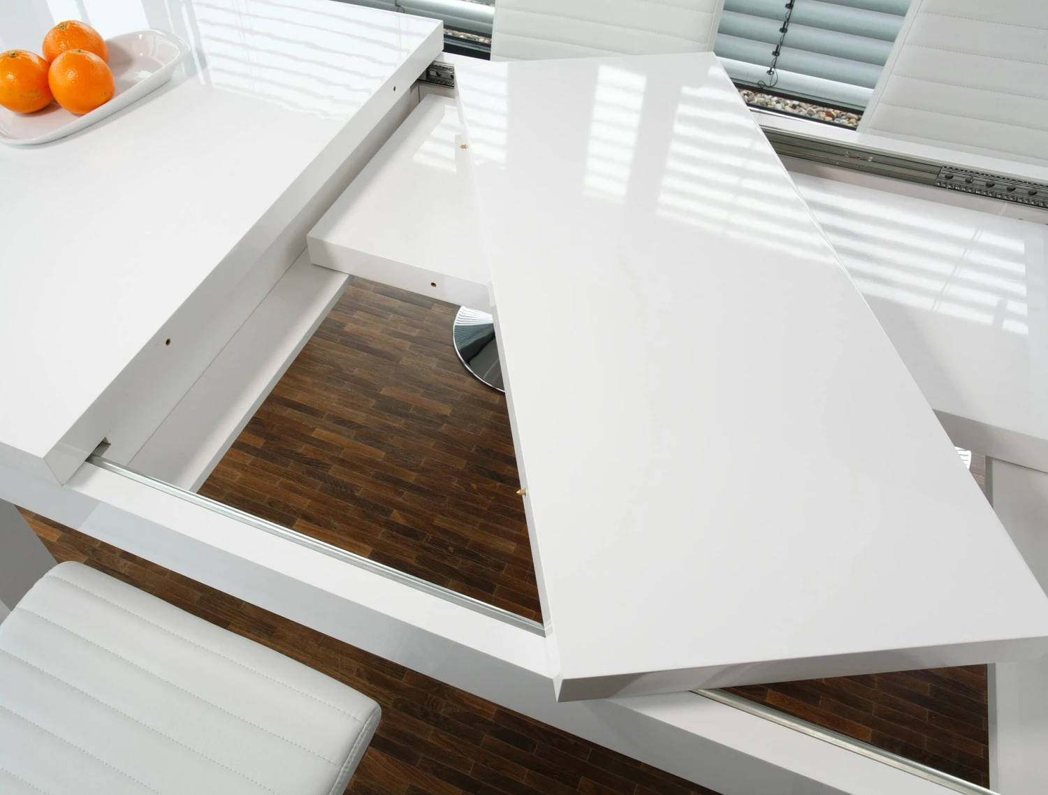 Der Esstisch „Luke“ vereint höchste Ansprüche an Design und Funktionalität. Die massive Optik steht im harmonischen Kontrast zu der weißen Highgloss Oberfläche. Die Tischplatte lässt sich ausziehen und bietet somit Platz für das gemeinsame Essen mit vielen Freunden oder der Familie. Passen Sie ihn einfach nach Ihren Bedürfnissen an. Einfachheit die begeistert!