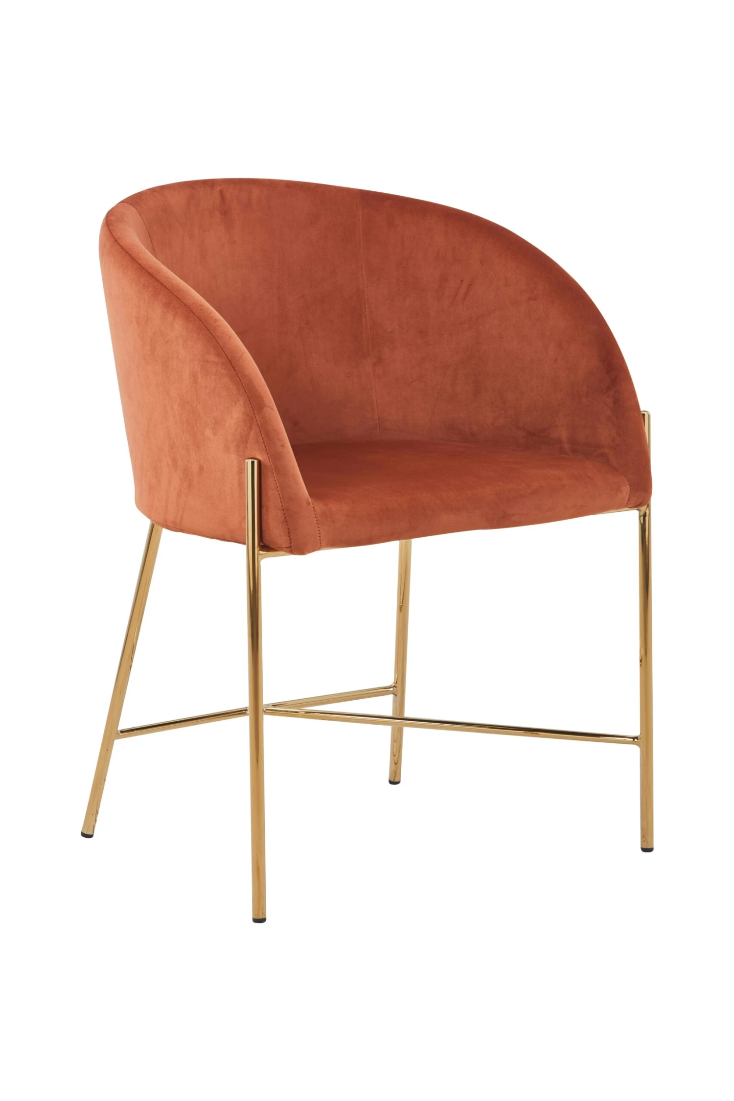 Samt liegt voll im Trend der Zeit. Der elegante Armlehnstuhl besticht durch seinen Stoffbezug in Samt-Optik und überzeugt mit seiner speziellen Formgebung. Das leicht ausgestellte 4 Fuß Gestell aus Metall in Messing-farben ist überaus elegant und gewährleistet nicht nur einen sicheren Stand, sondern ergänzt das harmonische Gesamtbild. Durch die bequeme Polsterung, die Rückenlehne und die Armlehnen entsteht ein angenehmer Sitzkomfort der Extraklasse. Das optische Highlight dieses Polstersessels ist die abgerundete Sitzschale. Dadurch erhält dieser Polsterstuhl seine individuelle Eleganz.