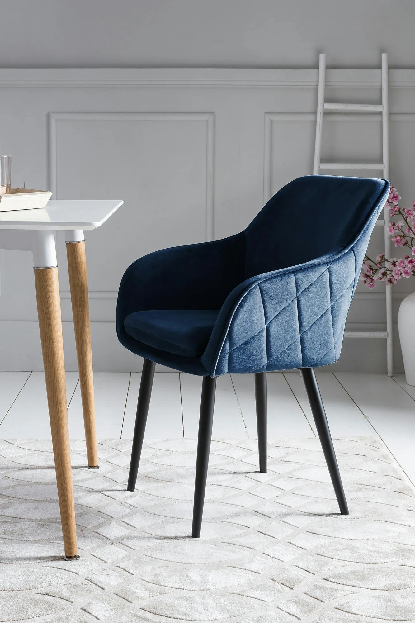 SalesFever Esszimmerstuhl | Stoffbezug In Samt-Optik | Höhenverstellbares Metallgestell | Diamantsteppung | B 61 X T 60 X H 85 Cm | Blau – Schwarz