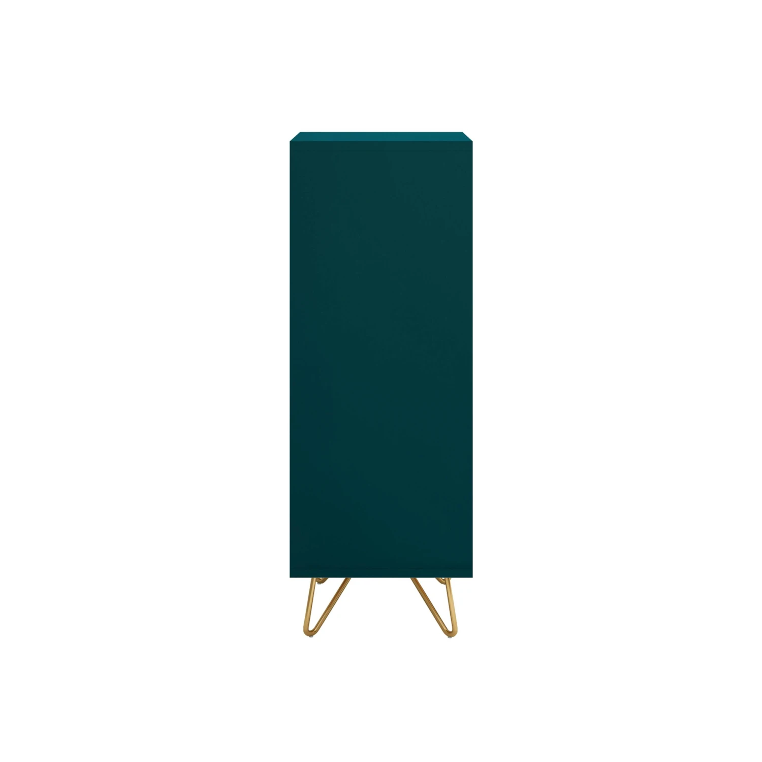 SalesFever Kommode Hoch | 4 Schubladen Und 1 Fach | Inkl. Spiegel | Beine Metall Mit Messinglegierung | B 45 X T 40 X H 110 Cm | Blau