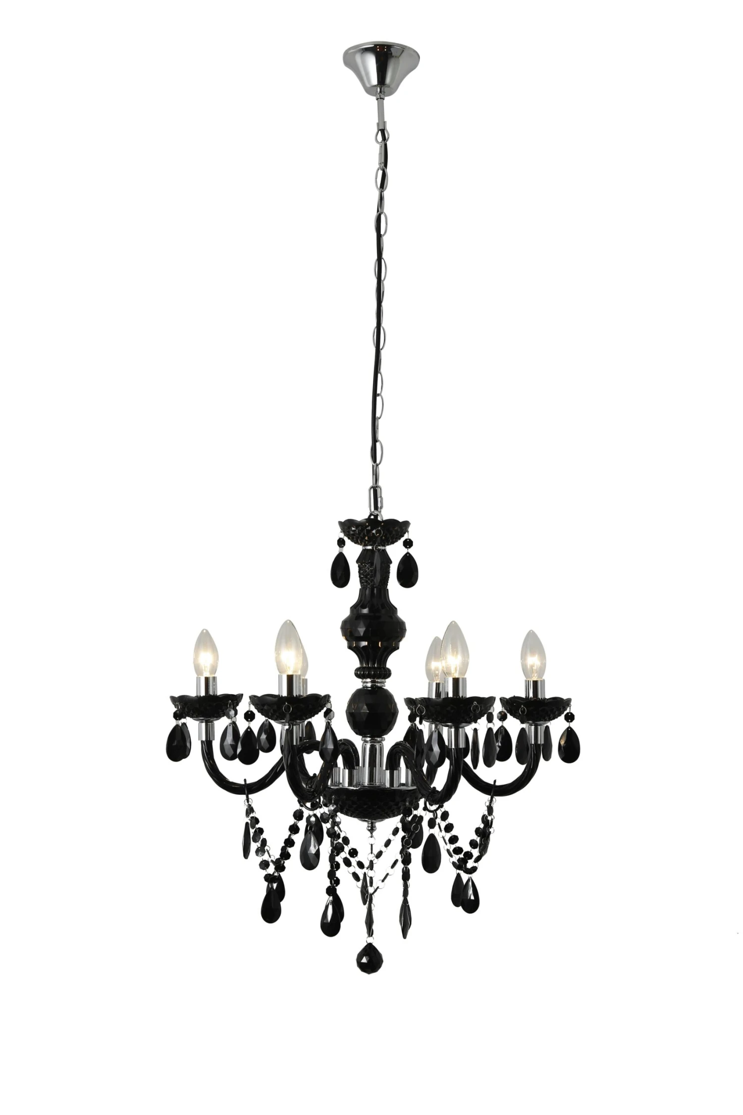 Der extravagante Kronleuchter überzeugt mit seinem modernen Design. Das gelungene Erscheinungsbild und die hochwertigen Materialien machen diese Pendelleuchte für modernes Wohnen so beliebt. Im eingeschalteten Zustand ist eine schöne Ausleuchtung garantiert, aber auch im ausgeschalteten Zustand ist diese Deckenleuchte ein besonderes Highlight. Die Metallaufhängung ist umgeben von neun Lampenbefestigungen. Der Behang ist aus schwarzem Acryl-Glas und sehr pflegeleicht. Besonders über einem Esstisch macht dieser Kronleuchter eine gute Figur, aber achten Sie darauf, dass dieser nicht zu tief hängt. Die exklusive und stylische Wirkung der Hängeleuchte ist ein eindrucksvoller Blickfang in Ihrem Wohnraum und verkörpert den modernen Stil.