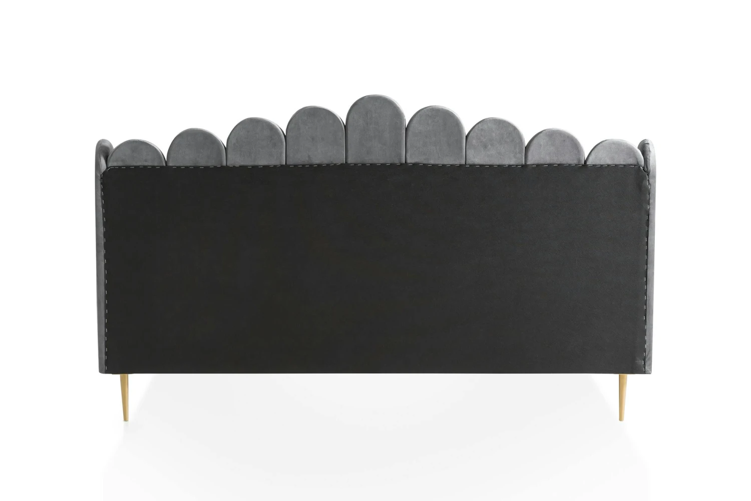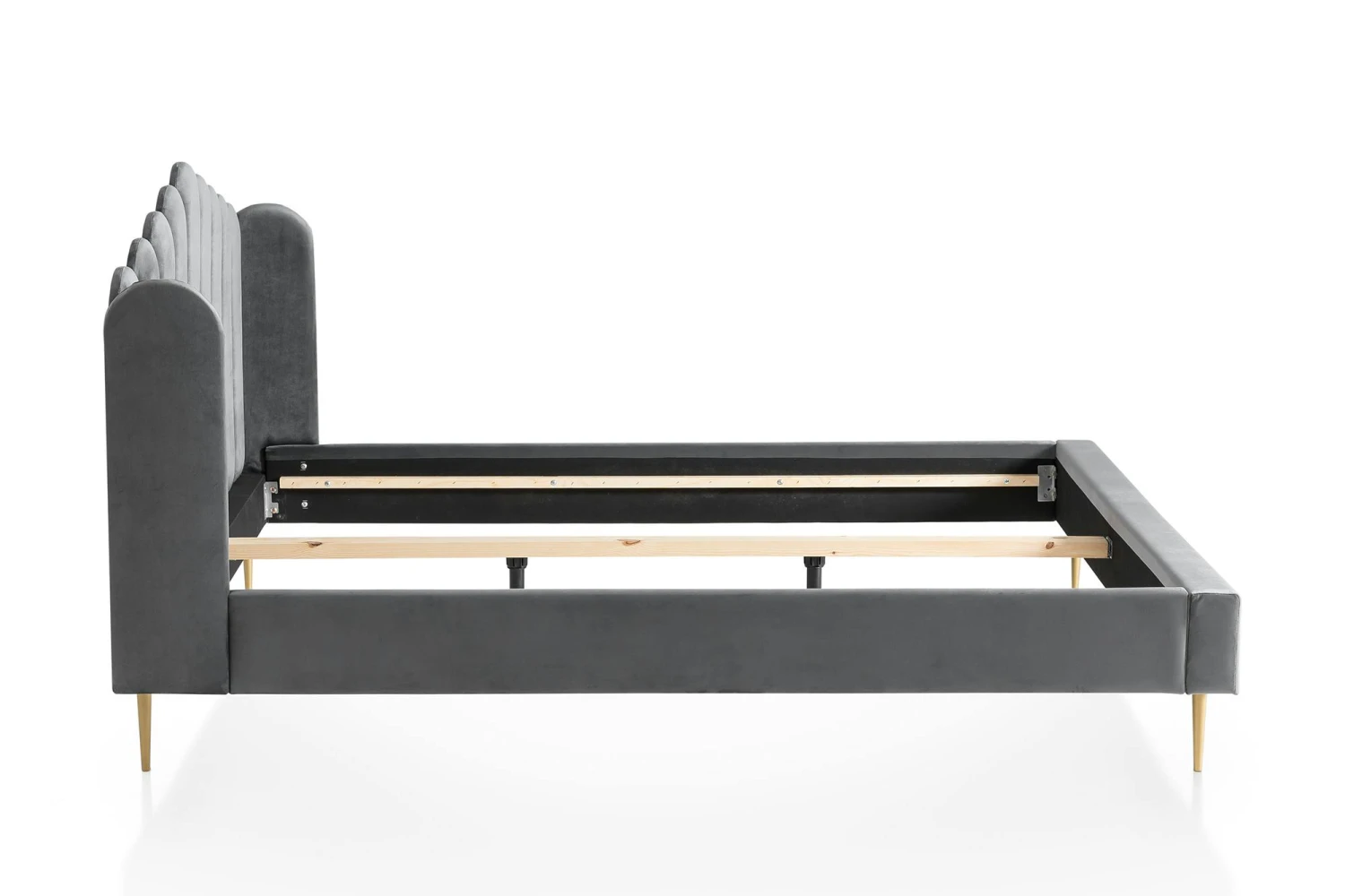 Entfliehen Sie dem Alltag und genießen Sie eine kleine Auszeit. Das moderne Polsterbett im Muschel-Design besticht durch seinen Bezug aus Samt und überzeugt mit seinem aufwändig gearbeiteten Kopfteil. Das 4 Fuß Gestell aus goldfarbenem Chrom gewährleistet nicht nur einen sicheren Stand, sondern bietet auch einen großartigen Kontrast zum Bezug des Bettes. Durch die 18 cm Bodenfreiheit entsteht unter dem Bett zusätzlich die Möglichkeit auf Stauraum. Die abgerundete Form des Kopfteils sorgt für einen weichen Look. Dieses Muschelbett ist ein echtes Schmuckstück und wird in Ihrem Schlafzimmer nicht nur zum optischen Highlight, sondern auch zu Ihrem neuen Wohlfühl-Platz für entspannte Nächte.