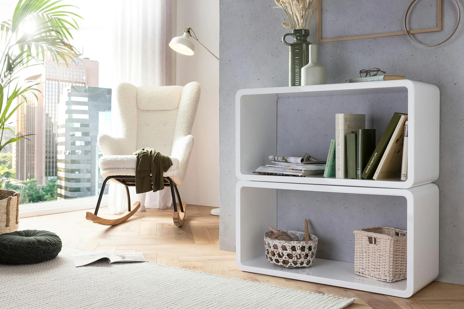 Dieses schöne Regalelement im edlen Retrostil wird zum praktischen und dekorativen Hingucker in jeder Wohnung. Bestehend aus formstabilem MDF, ist das Regal feuchtigkeitsbeständig, pflegeleicht und hat eine hohe Belastbarkeit. Mit seinem zeitlosen Design und modernem Stil ist der Regalwürfel die ideale Ablagefläche für Bücher, CDs und andere Kleinigkeiten. Zusätzlicher Clou: Das Würfelelement kann auch als kompakter Beistelltisch genutzt werden. Die Abmessungen von 45×45 cm finden auch in kleinen Nischen oder Ecken neben dem Sofa Platz und bieten dort Ablagemöglichkeit für Fernbedienung, Magazine und Co.