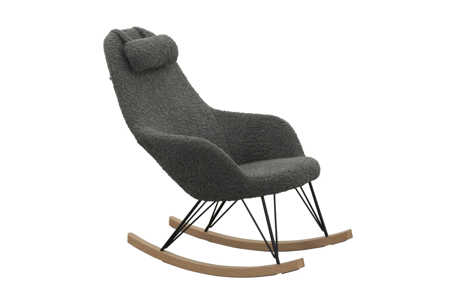 SalesFever Schaukelstuhl | Bezug Teddyfell | Kufen Massiv-Holz | Gestell Metall Schwarz | B 75 X T 102 X H 106 Cm | Grau