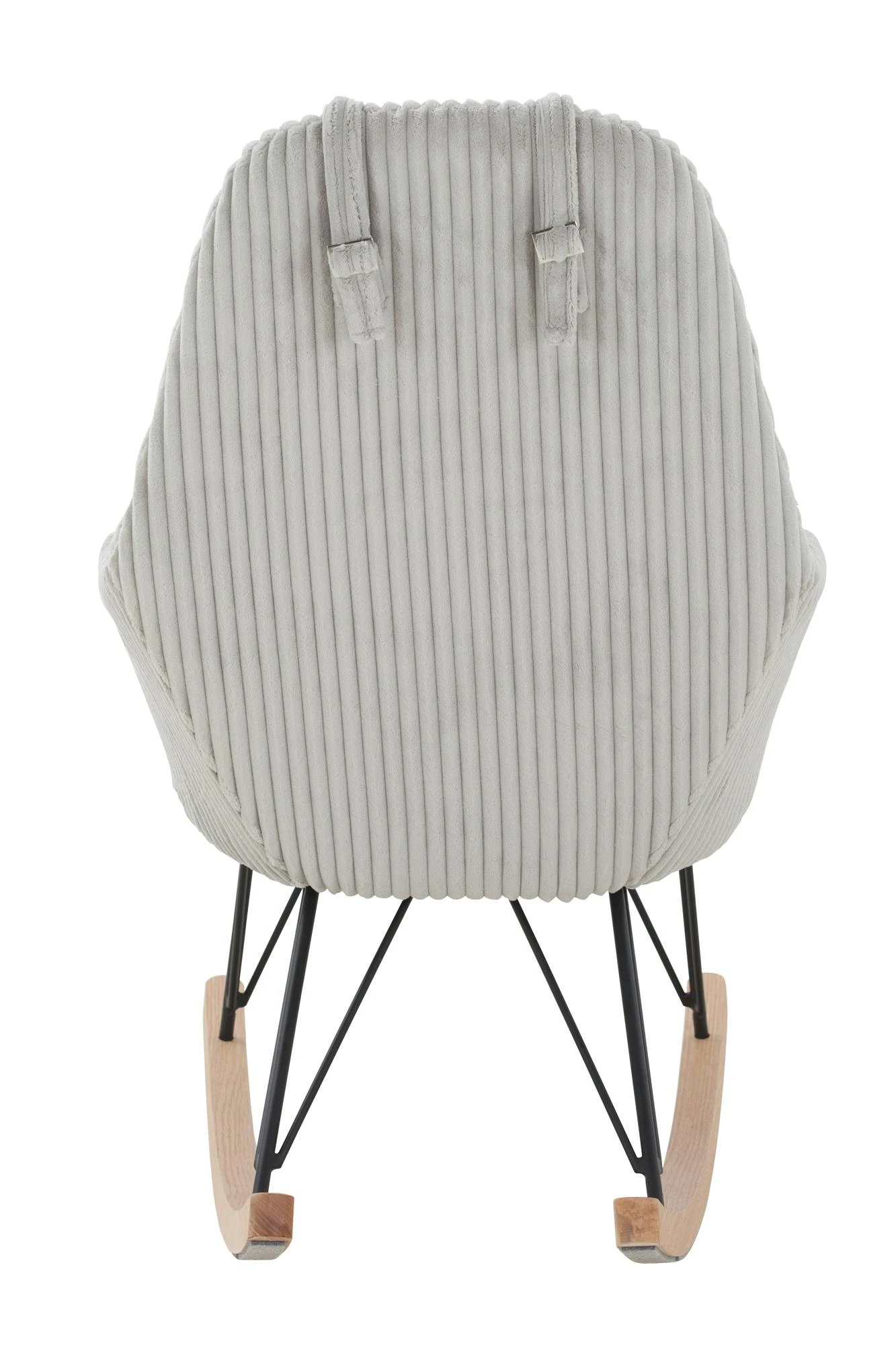 Der Schaukelstuhl im skandinavischen Stil ist mit einem beweglichen Kopfkissen ausgestattet. Der graue Bezug aus hochwertigem Texturstoff bietet Ihnen eine stylischen Sitzplatz zum Wohlfühlen. Während das Gestell aus schwarz pulverbeschichtetem Metall besteht, sind die geschwungenen Kufen aus Esche-Massivholz mit Eichenfurnier. Dieses Gestell gewährleistet nicht nur eine gleichmäßige Gewichtsverteilung und eine schöne Bewegung des Sessels, sondern harmonisiert auch perfekt mit dem Textilbezug. Durch die Polsterung, die Armlehnen und das Kopf- und Sitzkissen erleben Sie Entspannung und Komfort der Extraklasse. Der Schaukelsessel punktet durch sein auffälliges Aussehen, mit Qualität und Strapazierfähigkeit. Machen Sie diesen Schaukelstuhl zu Ihrem neuen Lieblingsplatz und genießen Sie die Gemütlichkeit beim Lesen oder Fernsehen.