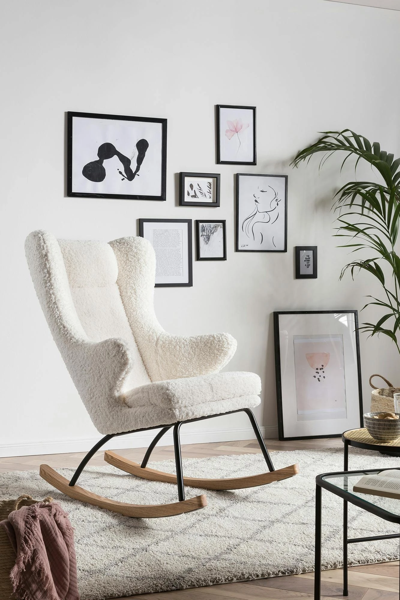 SalesFever Schaukelstuhl | Teddyfell | B 66 X T 104 X H 106 Cm | Weiß