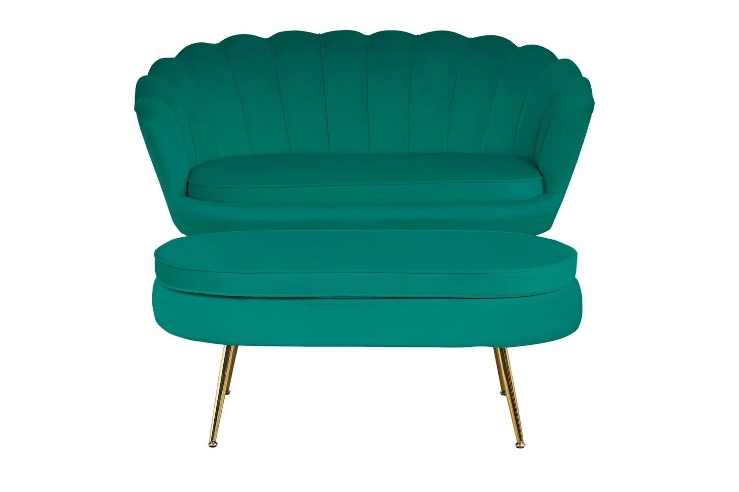 SalesFever Sitzpouf | Oval | Bezug Samt-Stoff Grün | Gestell Metall Goldfarben | B 99 X T 44 X H 40 Cm