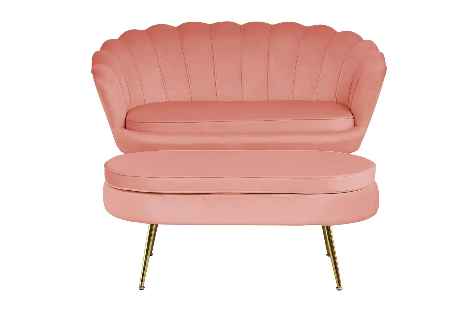 SalesFever Sitzpouf | Oval | Bezug Samt-Stoff Rose | Gestell Metall Goldfarben | B 99 X T 44 X H 40 Cm